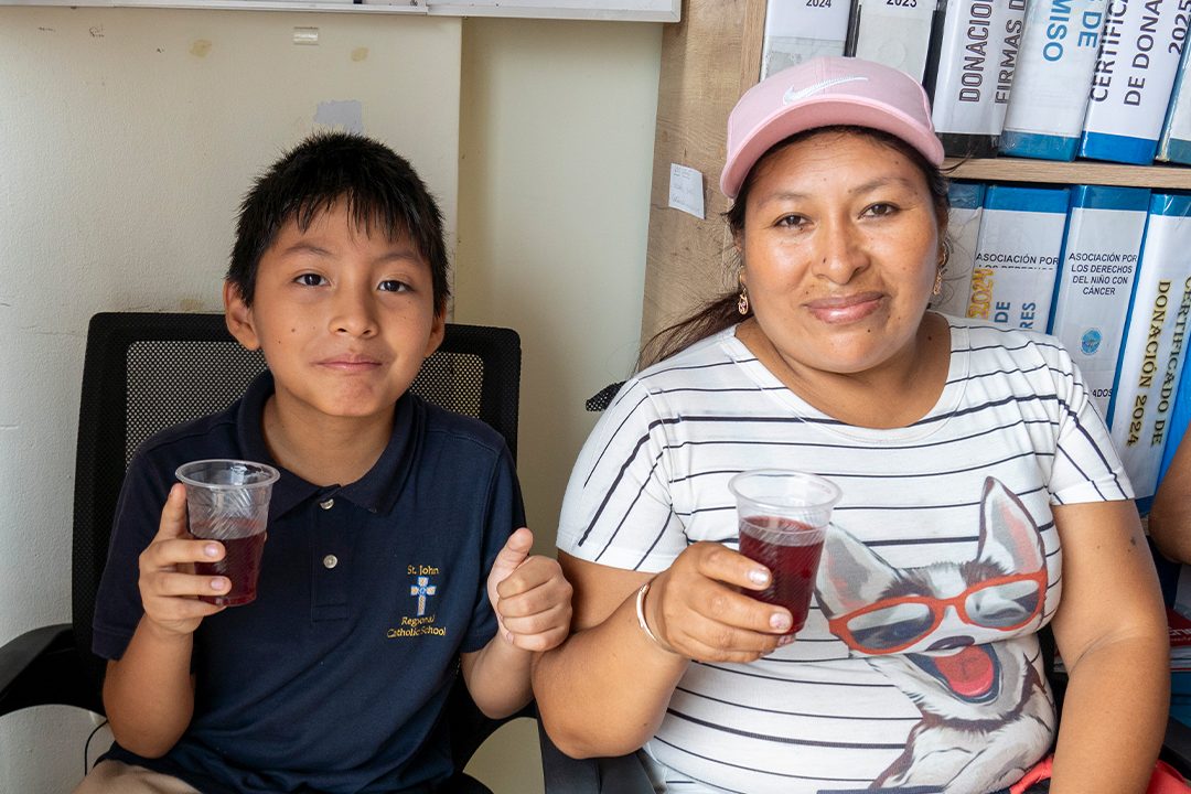 Madre y niño de la asociación compartiendo almuerzo. – Foto: Asociación por los Derechos del Niño con Cáncer.